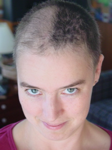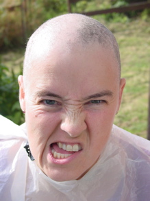 This morning I got sick of what was left of my hair (which was falling out in clumps when touched anyway) so here is a photo essay! Click for bigger photos.