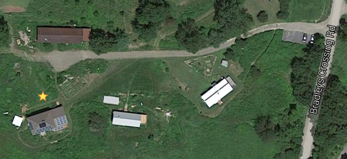 The star marks our house. Our cars are usually parked at right, by the road. (Click for bigger version of photo)